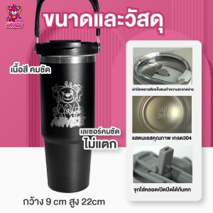 วัสดุ : แก้วสแตนเลสพรีเมียมเกรด 304 ฟู้ดเกรด
